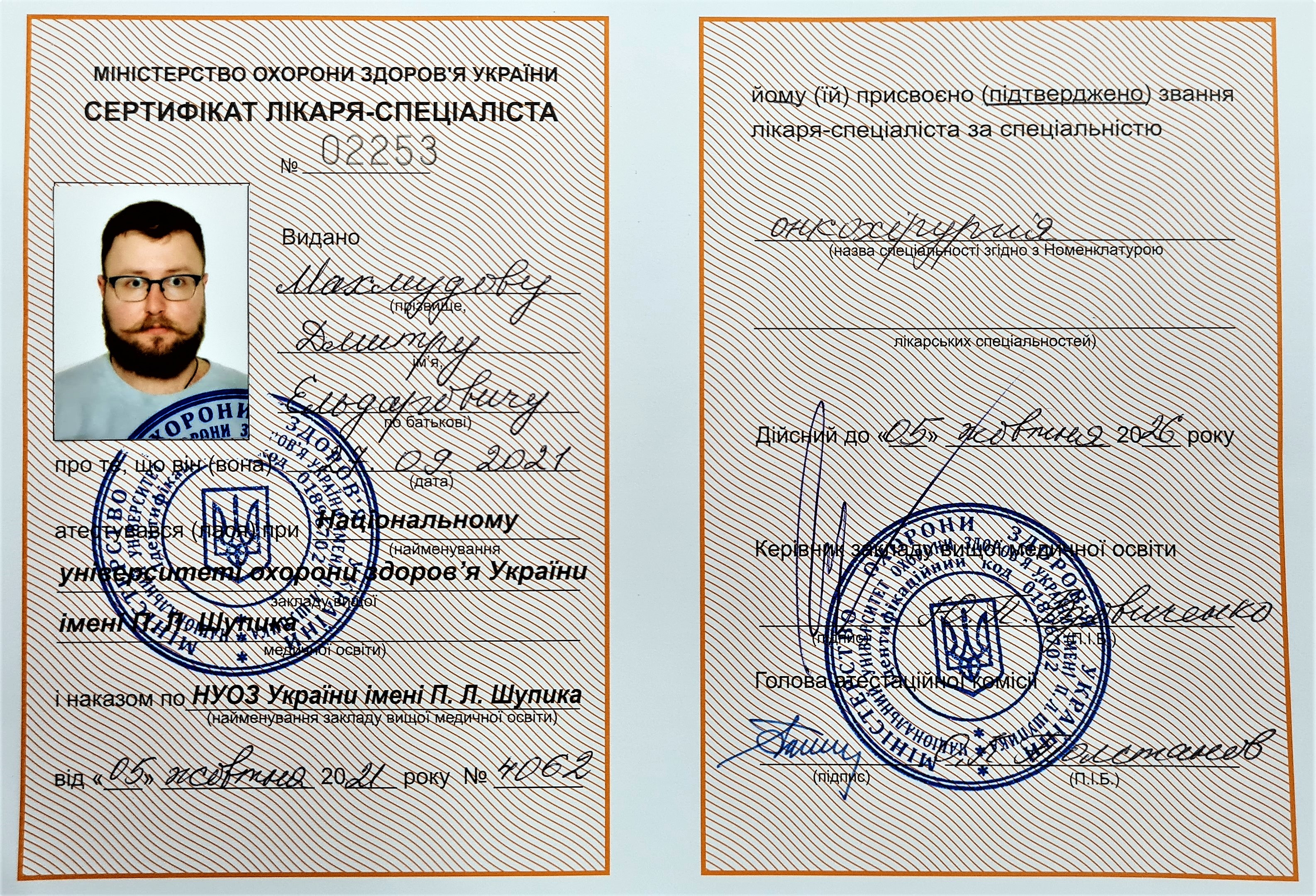 Хірург-онколог-проктолог, кандидат медичних наук за спеціальністю «онкологія» (PhD)
